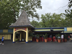 All Time Maximum Capacity: 1,123 an hour Europa is home to three original park rides that were in operation on opening day, May 26, 1973, and Autobahn, or Der Fender Bender (DFB) as it was originally entitled, is one of those three. DFB/Autobahn is nothing really special, it's just your ordinary bumper cars ride, riders 48" or taller can ride either single or double, and drive their own electric car around the course in the ultimate game of road rage. The interesting story behind Autobahn/DFB isn't so much what it is, but more so how much it has changed. The first big change Autobahn experienced was its name change. Autobahn originally opened in 1973 as Der Fender Bender, and it stayed that way until 1997, when Cedar Fair, the new owners of the park at the time decided to change the ride's name to just Autobahn. No one really knows why the ride name was changed, but since both are thematically appropriate there has never been a large outcry over the name change. Still, many who worked at the park in the 70's and 80's still refer to the ride as DFB. Also of interest, the two ends of the ride's course were enclosed in 2010 partially for Snoopy's Hot Summer Lights (one end was used for costuming). However, prior to 2010 both ends had already been closed off for maintenance for several years. Its worth noting that the ride originally operated with almost the full building's length as its overall course. Additional PhotosBack to Europa |