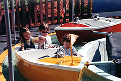 Worlds of Fun Gone but Not Forgotten: The Defunct Rides & AttractionsHere you will find a list of most of the removed/past attractions from Worlds of Fun's past. For more information you can click on the attraction's name to be taken to a specific attraction page with more information, photos and in some cases video. Please be aware that not every attraction has a specific page at this point. Thank you for your patience! ScandinaviaSchussboomer 1973-1984 ![]() A compact coaster designed by Anton Schwartzkopf, and classified as a "Wildcat" style coaster. Schussboomer's name refers to the "Schuss" of a downhill skier. Schussboomer was bought by the park used, and was a portable, fair-style model (meaning it was meant to be able to be moved from place to place). Riders rode in small four-seat cars as opposed to the more common coaster train. It was removed after the 1984 season and its location is currently occupied by The Grand Carousel. Ski Heis 1973-1987 ![]() An incredibly popular family ride, Ski Heis was the Scandinavian hub for this one-way aerial gondola ride. Manufactured by Von Roll of Switzerland, a company famous for manufacturing ski lift rides, Ski Heis operated with four-seat semi-enclosed cars. The motor for the Ski Heis was located in Scandinavia, while the counter-weight was located in Americana. The station for both hubs for this ride are currently still located in the park, Ski Heis station is currently used as a picnic facility, Tivoli East. Ski Heis, like most rides was inherently very safe, but was removed due to liability issues. Victrix 1973-1992 ![]() Victrix was one of two full size ship models, and one of over a dozen items, purchased by Hunt Midwest from the MGM Backlot auction in 1971. This full-sized, four-masted schooner (think pirate ship) was used in many MGM films, but was most notably used for "All the Brothers Were Valiant" in 1953. When it came to Worlds of Fun it was used for many years as a man o' war firing range where guests could fire mini-cannons at floating targets. It was removed due to rotting and deterioration of the structure. Finnish Fling 1973-2017 ![]() This small footprint of a ride also opened with the park on May 26, 1973. Fling was originally manufactured by Chance Rides of Wichita, Ks. and was known more universally by its model name "Rotor". At the time of it's removal following the 2017 season, it was the last Rotor operating in the Cedar Fair chain of parks. That wasn't always the case though, in the 1960's and 70's almost every park had a Rotor. The principle of the ride was very basic, riders board inside a cylindrical drum, and stand with their backs towards the wall. As the drum begins to spin it increased to a maximum speed of 33 RPM and the floor would drop out leaving riders "stuck" to the wall. Oriental Octopus 1973 - (1984 Tailspinner/1998 Octopus) 2014 ![]() Along with Bamboozler, Octopus was one of the most moved and re-named attractions to be located at Worlds of Fun. Oriental Octopus opened with the park in 1973 and was painted all black. It was moved to the Aerodrome in 1984 to replace the Barnstormer which had been removed the prior year, in 1983. Once it was moved it was renamed "Tailspinner" and re-painted in the multi-color "balloon" paint scheme. When Pandamonium replaced Aerodrome in 1987 Tailspinner remained in the section (it was renamed Octopus) but was repainted a red "tomato-plant" color scheme". When Bearenstain Bear Country was added in 1997, Octopus was removed from the park for one season, but was re-added to Scandinavia in 1998 and was retained the name "Octopus", it also received new cars at this time that were painted lime green. It remained in Scandinavia until 2014 when it was removed permanently. Its parts are currently being used at the Monster at Valleyfair! in Minnesota. Kopter 1973 - 1976 ![]() Kopter was one of Worlds of Fun's first children's rides, and consisted of small child-sized helicopters that circled a central hub. It was manufactured by Allan Hershchell of New York. With the introduction of Hampty's Haven in 1977 Kopter was removed. It was originally thought to have been modified into Bounce-A-Roo's, but it is believed now to have been swapped with King's Island for their Kikki Kangaroo ride instead. Half Pint's Peak 1977 - 1986 ![]() In 1977 Scandinavia became home to the park's first area devoted to children, as part of this new development was half pint's peak, a foam yellow mountain that kids could climb and slide down. Half Pint's Peak also encompassed a small play area complete with ball pit, and foam punching bag maze. It was located approximately were Tivoli Central is today. Micro Moto Bahn 1977 - (Road Rally) 2010 ![]() A small, circular children's ride manufactured by Hampton Rides, it was located in Scandinavia added to Humpty's Haven in 1977. Unlike the other Scandinavian children's rides it remained located in Scandinavia until 2001, it was located near Tivoli Central picnic facilities. It was finally moved to Camp Snoopy in 2001 and remained there until it was removed in 2010. Humpty's Haven 1978-1986 ![]() Along with Half Pint's Peak was Humpty's Haven, which featured a small theater area, complete with marionette show, miniature rides, (Boat Tank still operates in Planet Snoopy), and various nursery rhyme statuary (Humpty was predominate). Tot's Yachts 1978 - (Peanut's Yacht Club) - 2022 ![]() A long standing Worlds of Fun's children's ride first introduced in Scandinavia in 1978. Small children could ride in one of six four-seat boats that rotated around in a circle. Riders could also ring their individual boat's bell. Tot's Yachts was one of the first children's rides to be moved being relocated in 1991 to Pandamonium to make way for Fjord Fjarlane. It was re-named to Peanut's Yacht Club in 2001 with the addition of Camp Snoopy. Viking Vheel 1982 - (Head over Wheels) 2010 ![]() A small children's ferris wheel manufactured by the Theel company, it was originally lo